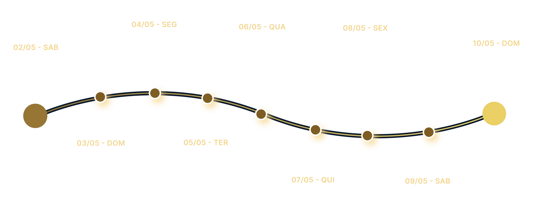Imersão de 7 dias com conteúdo estratégico, visitas a empreendimentos, networking de alto nível e experiências exclusivas para que você entenda, com profundidade, como e por que investir em Dubai.